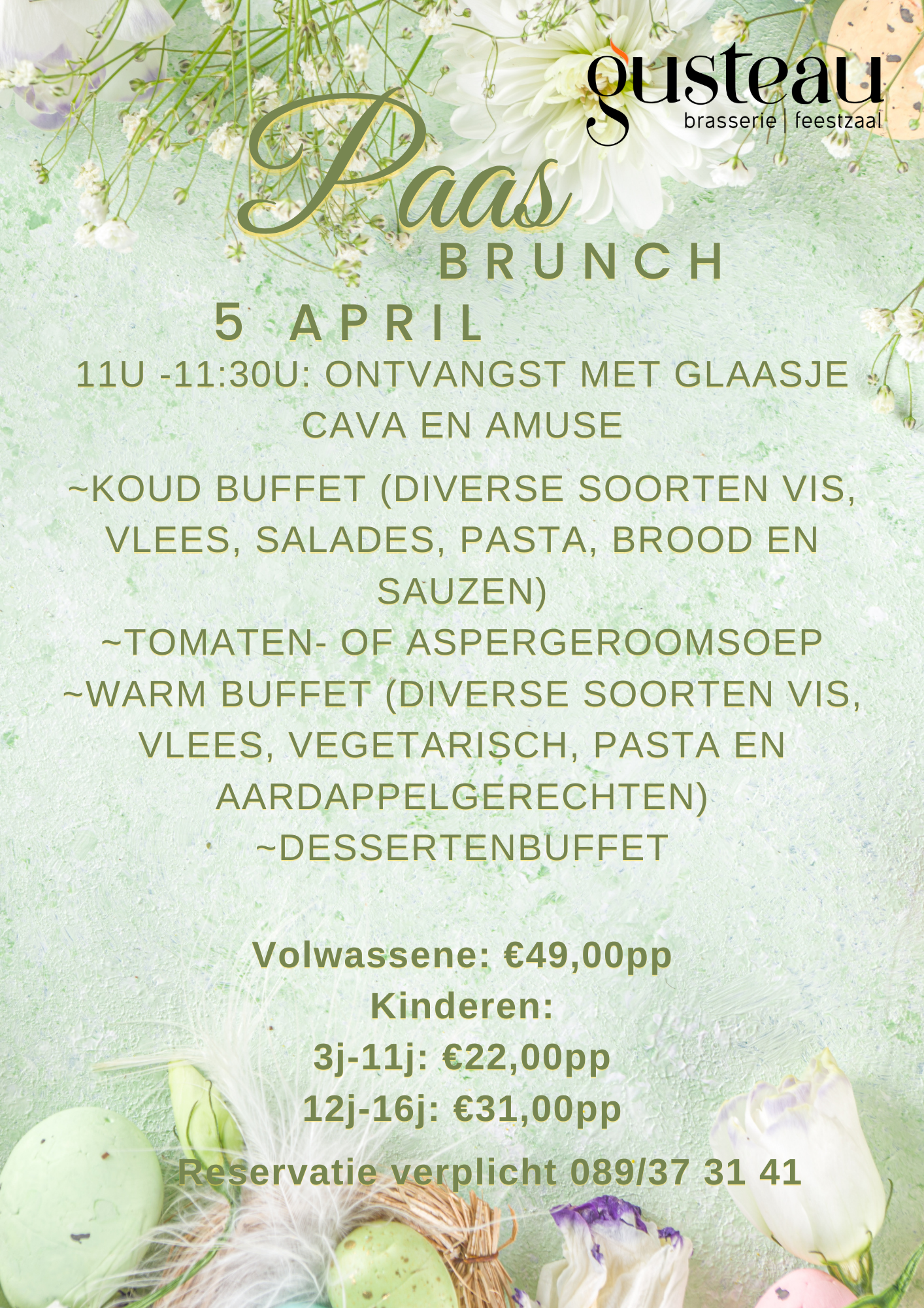 Op zondag 5 april organiseren wij weer onze paasbrunch.